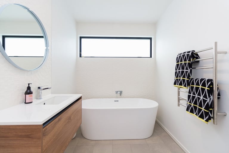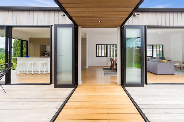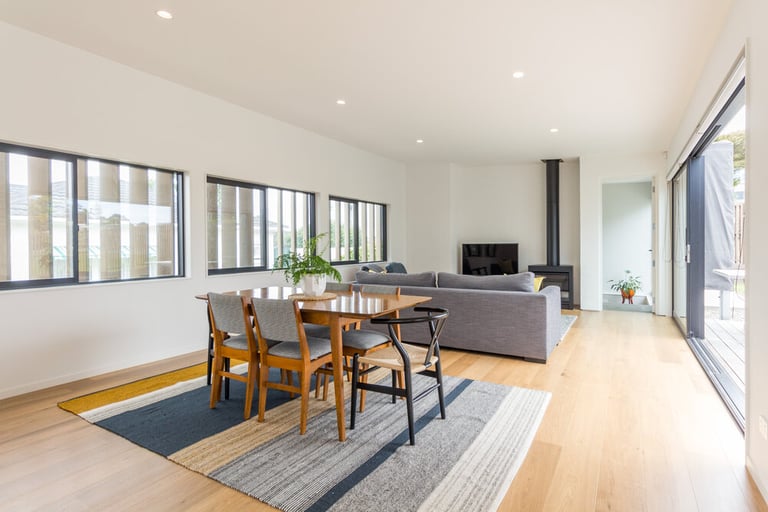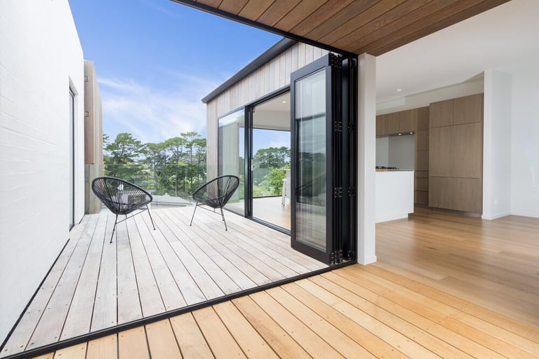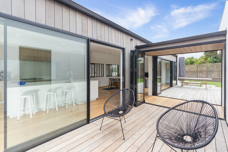This stunning architectural home features cedar shiplap cladding, textured brick work with bagging finish, and a block work basement. The exterior cedar louvres offer privacy, shade and direct the owner's view toward the ocean. Kwila decking connects the inside to the outdoors with a seamless flow, and the custom aluminium joinery frames the view from every room.